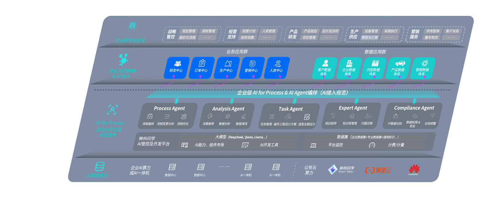 端到端的一站式AI工作空间深度融合了从企业战略规划到日常经营的全流程业务板块,,定向解决车企内部领域多、、、部门多、、链条长、、场景碎片化等难题,,,,支持车企快速构建以AI为核心的生产力写作体系,,实现任务执行与AI能力的无缝集成与交互